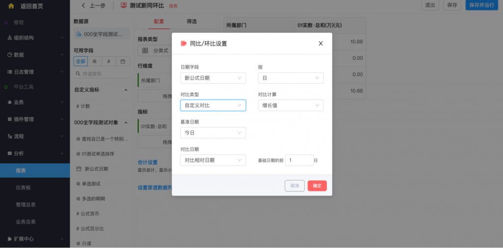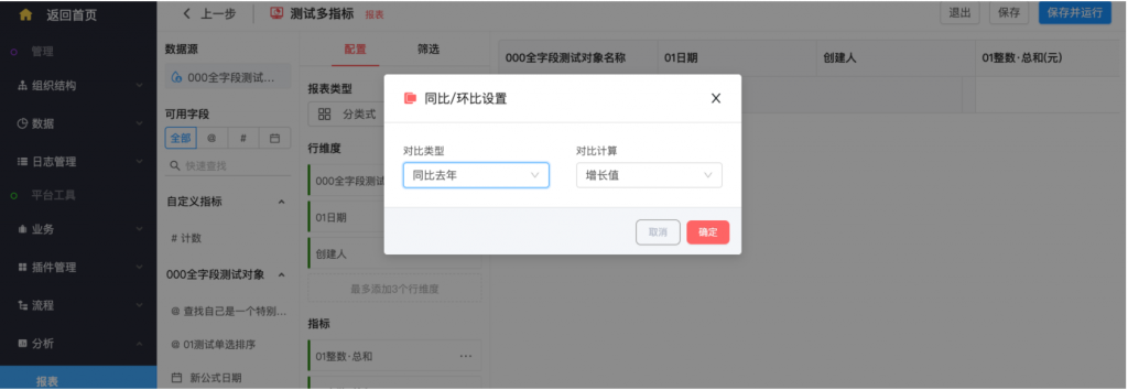 - 具有時間維度的同環(huán)比設置,可配置同比