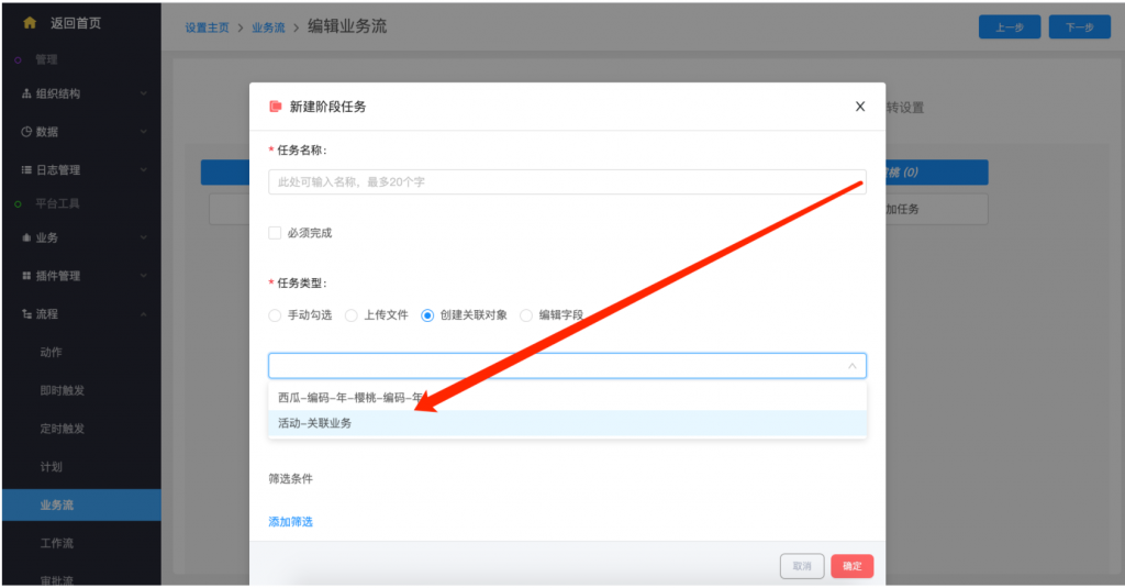 - 業(yè)務流創(chuàng)建關聯(lián)對象類型的任務,支持活動對象