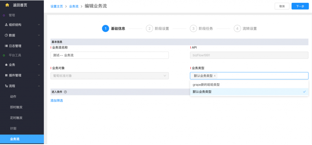 - 后臺編輯業(yè)務流配置時,支持編輯業(yè)務類型;