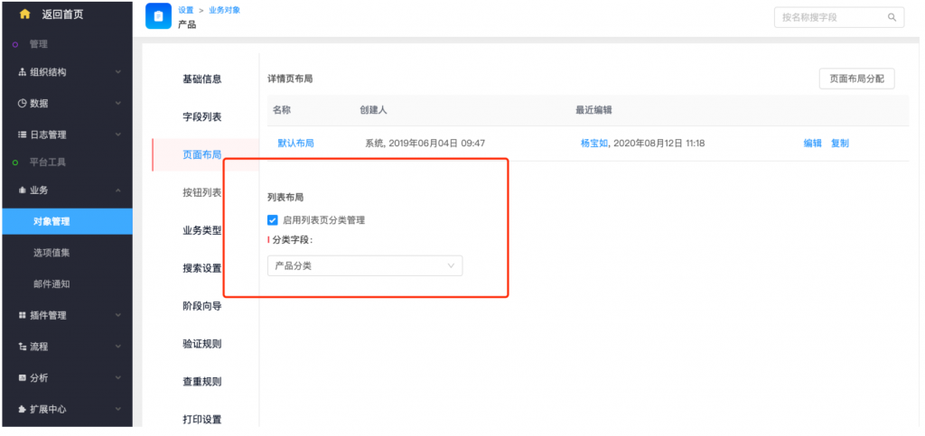 - 系統(tǒng)設置——業(yè)務——對象管理——頁面布局——列表布局