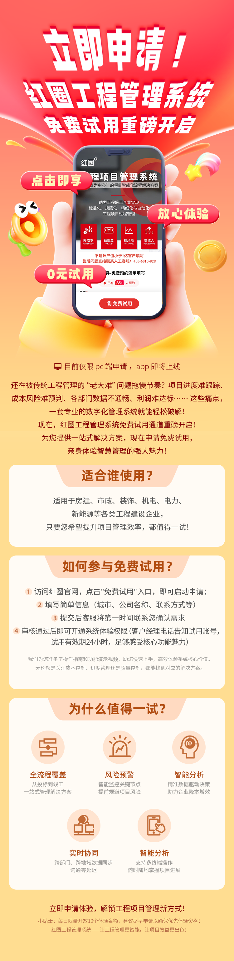 - 立即申請(qǐng)!紅圈工程管理系統(tǒng)免費(fèi)試用重磅開啟!