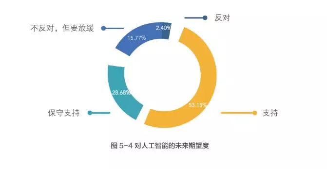 1)國(guó)民認(rèn)知:國(guó)民對(duì)人工智能認(rèn)知度高,超半數(shù)受訪者支持其全面發(fā)展。今日頭條的問(wèn)卷調(diào)查顯示,只有6.23%的受訪者對(duì)人工智能不了解;53%受訪者支持人工智能全面發(fā)展,而持保守態(tài)度的為27%。