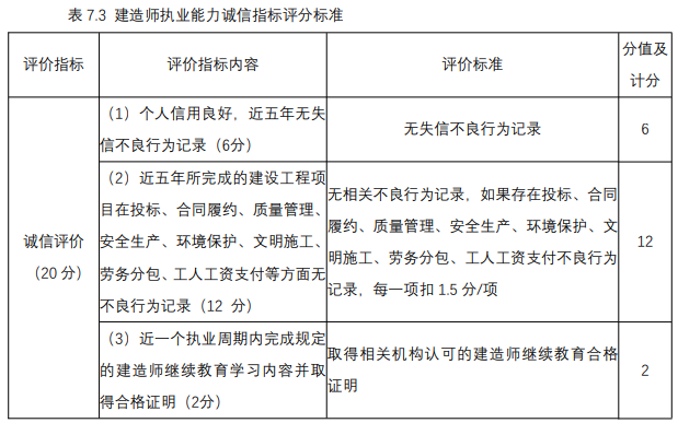 建造師執(zhí)業(yè)能力誠信指標(biāo)按表中的標(biāo)準(zhǔn)評分。
